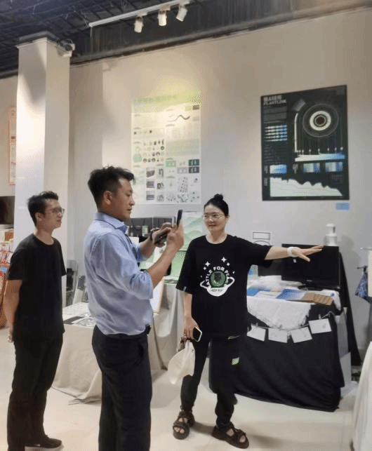 6月5日下午,海口市旅游商品与装备协会会长郗志强、秘书长陈勇周及海流文化创意设计有限公司负责人陈明智一行参观公司2025届设计系本科毕业展。副经理元志东、实验室与设备管理中心孙焱老师、综合办于东平老师、设计系方星星老师陪同参观并讲解。