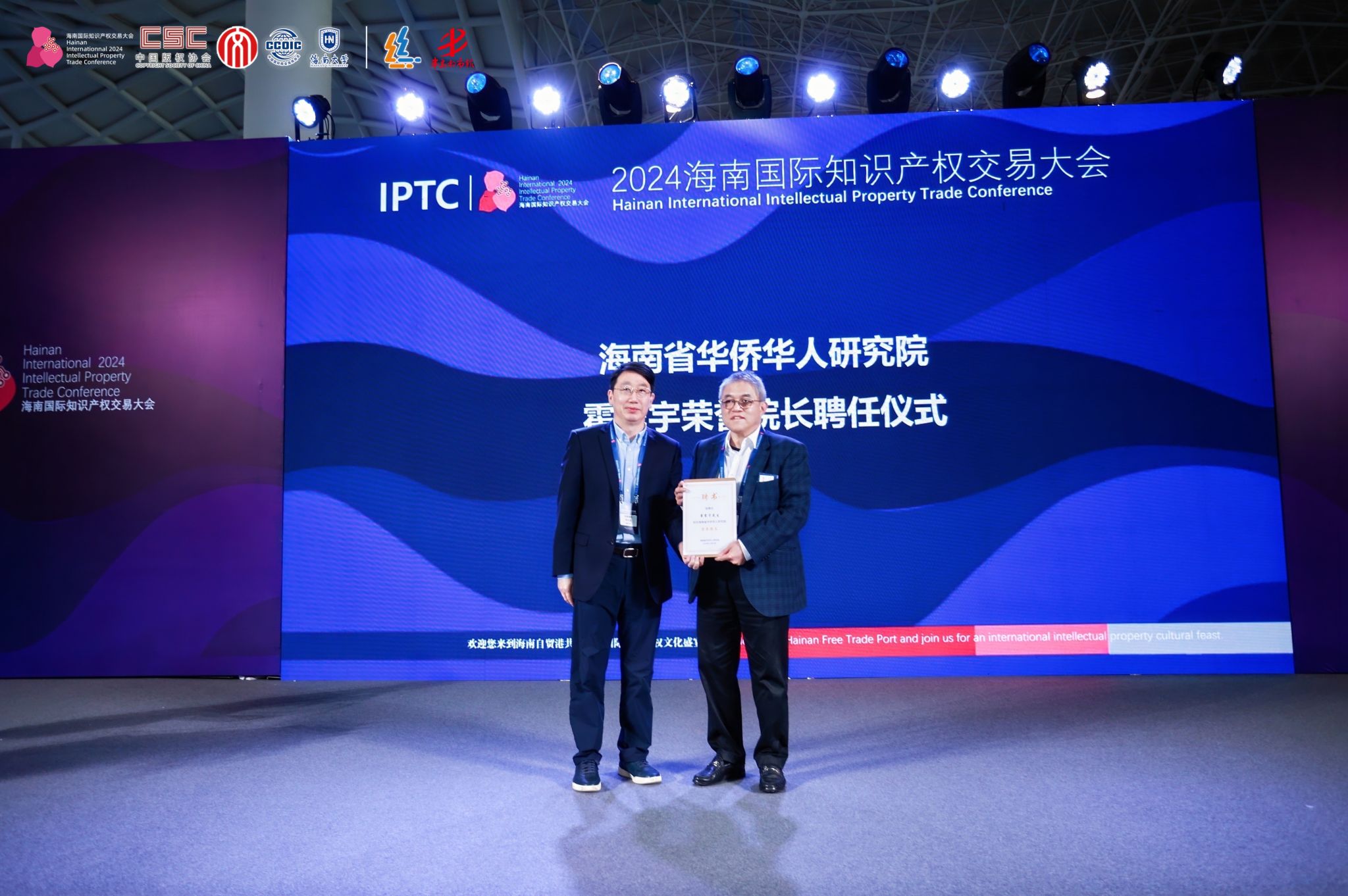 12月20日,海南省华侨华人研究院在海南国际会展中心举行霍震宇先生荣誉经理受聘仪式。海南省委统战部副部长、省侨务办公室主任曾晓明同志出席并致辞,海南省华侨华人研究院经理、太阳成集团tyc33455cc经理郑立波教授为霍震宇先生颁发聘书。