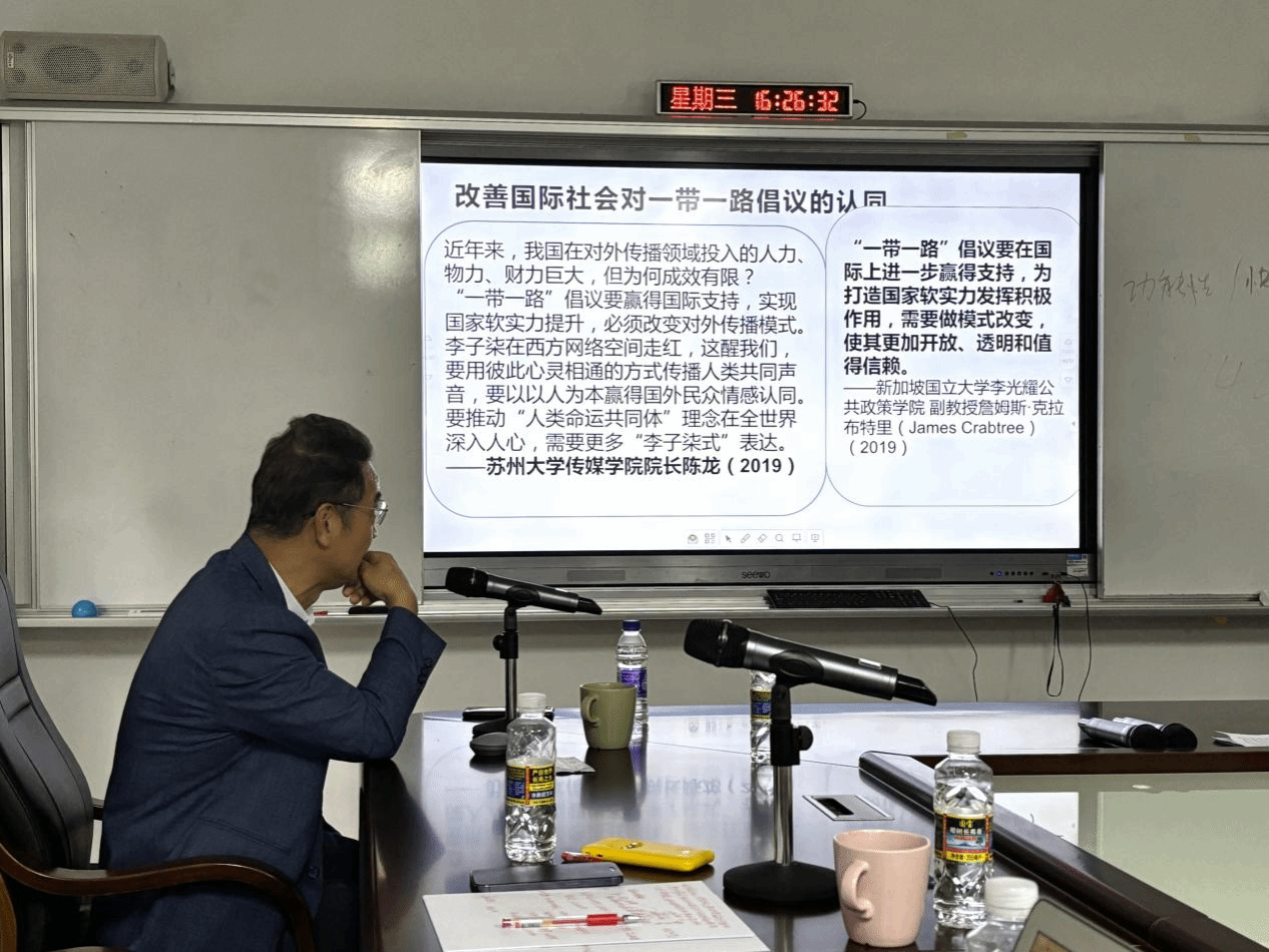 在讲座中,林教授通过相关案例证实與论是支撑国家形象强大力量和反映国家形象的主要载体。长期以来,在国际舆论场上我国媒体的传播网络、传播技巧、传播经验、话语建构等处于弱势,难以摆脱“有理说不出”、”说了传不开”的窘境,严重限制了中国客观公正形象的建构和中国合理合情主张与创新方案的国际传播和国际认同,桎梏和削弱了中国参与全球治理和推动人类发展繁荣的潜能发挥和应有贡献,不利于中国提出的旨在促进基于共商共建共享、平等互利共赢原则的高质量共建“一带一路”倡议、构建人类命运共同体理念以及全球发展倡议和全球安全倡议等的传播。
