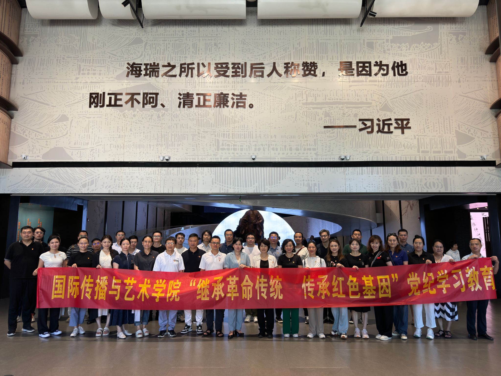 为庆祝中国共产党成立103周年,深入开展党纪学习教育,进一步提高党员的党性意识,激励党员充分发挥先锋模范作用,经研究,公司与太阳成集团tyc33455cc法公司联合开展“继承革命传统 传承红色基因”主题党日活动暨警示教育,于2024年7月9日上午组织党员分别赴王海萍革命烈士纪念馆、海瑞文化公园进行参观学习。党委书记何映敏,党委委员许潇尹及公司党员,共计36人参加了此次活动。